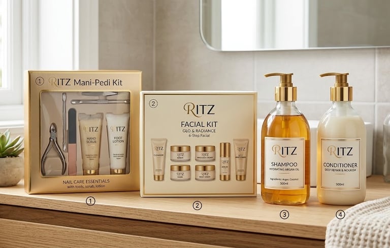 Premium mani-pedi kits, facial care sets, shampoos, conditioners, and professional beauty solutions distributed to salons, spas and retail partners across India.